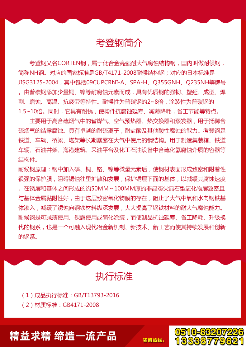 當(dāng)前位置:主頁(yè) > 產(chǎn)品展示> 考登鋼板